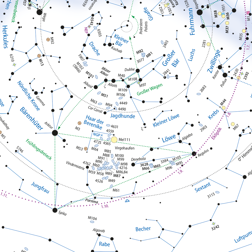 • Alle Sternbilder des Nordhimmels enthalten